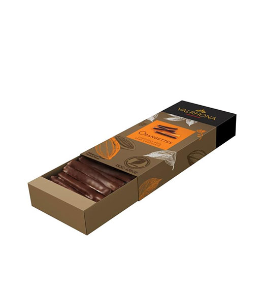 | Denominazione legale | Scorze di arancia candite e sfilettate, ricoperte di cioccolato fondente. |
