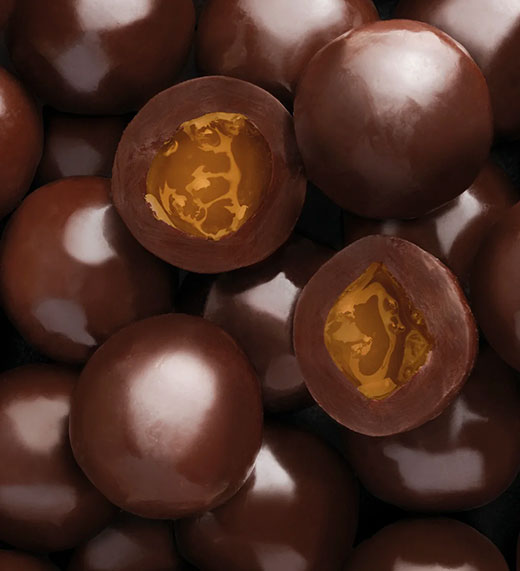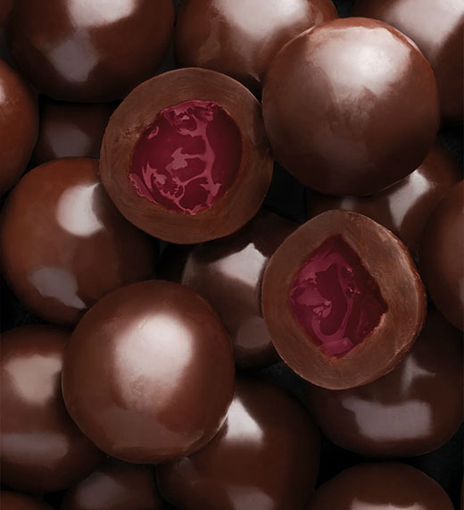 (gelatine assortite 20% – arancia, amarena, fragola- ; cioccolato fondente 79.9%) Ingredienti: cioccolato fondente 70% cacao min. (fave di cacao, zucchero grezzo di canna, burro di cacao), zucchero, sciroppo di glucosio, polpa di mele 2%, polpa di fragola 0.9%, polpa di amarena 0.4%, succo di arancia 0.22%, aromi naturali, olio essenziale di arancia dolce. Gelificante: pectina. Acidificante: acido citrico. Agenti di rivestimento: gomma arabica, gomma lacca. Può contenere latte, frutta a guscio, soia. SENZA GLUTINE Conservare in luogo fresco e asciutto